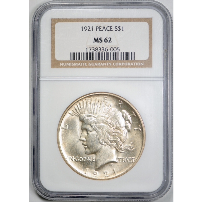 Description / 1921 $1 Peace Dollar High Relief NGC MS 62 Uncirculated Exceptional Coin