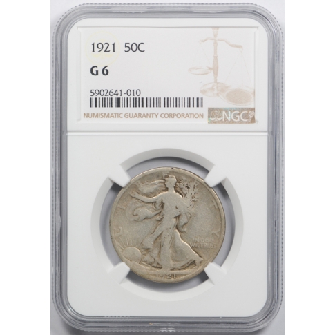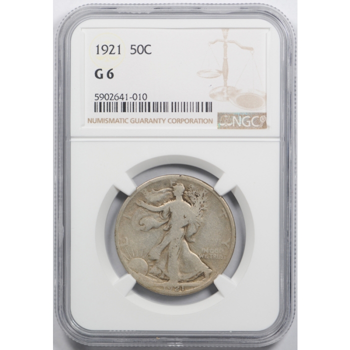 Description / 1921 Walking Liberty Half Dollar 50C NGC G 6 Good to Very Good Key Date P Mint Cert#1010