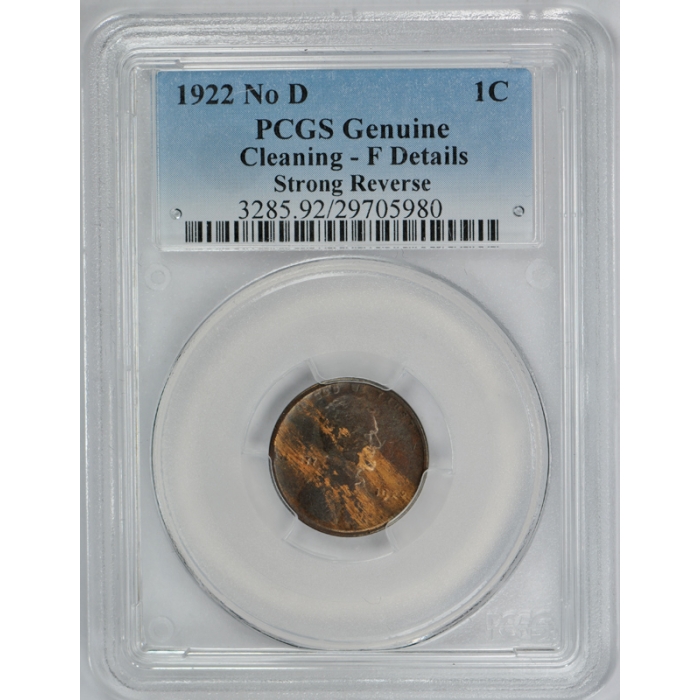 Description / 1922 No D Lincoln Cent Strong Reverse PCGS F Fine Details Cert5980