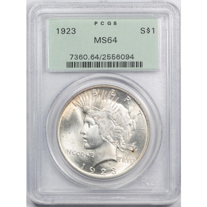 Description / 1923 $1 Peace Dollar PCGS MS 64 Uncirculated OGH Old Holder Original Cert#6094