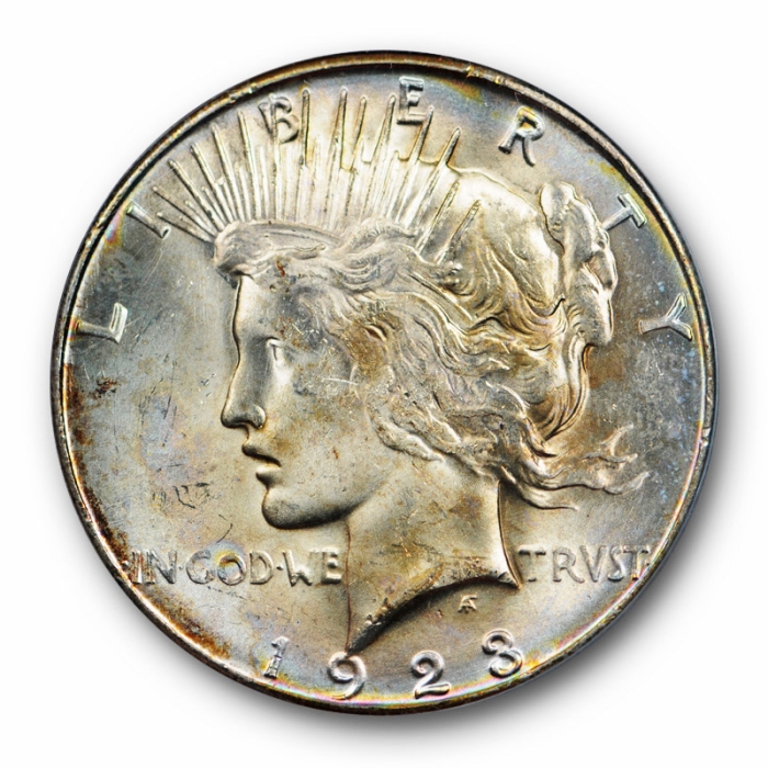 Description / 1923 S $1 Peace Dollar PCGS MS 64 Uncirculated OGH Looks Better! Toned