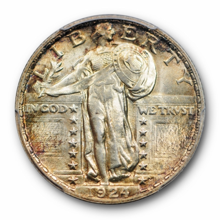 1924 25C Standing Liberty Quarter PCGS MS 64 Uncirculated Toned Decent Head !