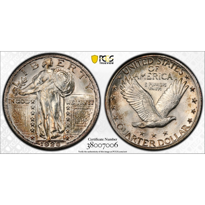 Description / 1926 25C Standing Liberty Quarter PCGS MS 62 Uncirculated Pretty Toned !