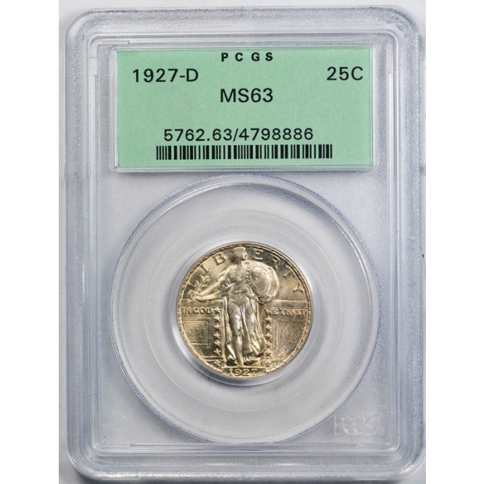 1927 D 25C Standing Liberty Quarter PCGS MS 63 Uncirculated OGH Sharp Strike