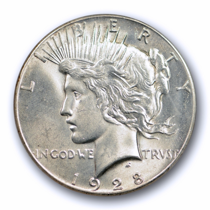 1928 $1 Peace Dollar PCGS MS 63 Uncirculated Key Date Sharp Strike US Coin