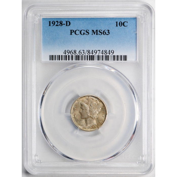 1928-D 10C Mercury Dime PCGS MS 63 Uncirculated Near Full Bands FB ?