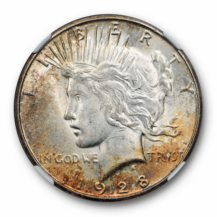 Description / 1928 S Peace Dollar $1 NGC MS 63 Uncirculated John Newman Collection Toned
