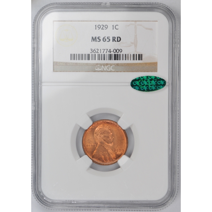 Description / 1929 Wheat Lincoln Cent 1C NGC MS 65 RD Red CAC Approved Beautiful