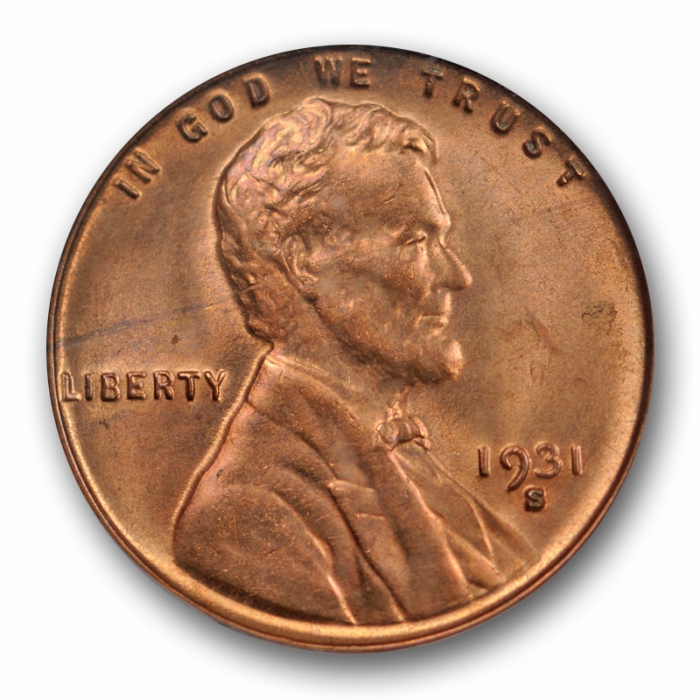 1931 S 1C Lincoln Wheat Cent PCGS MS 65 RD Uncirculated Fully Red Key Date Blazer Cert#8783