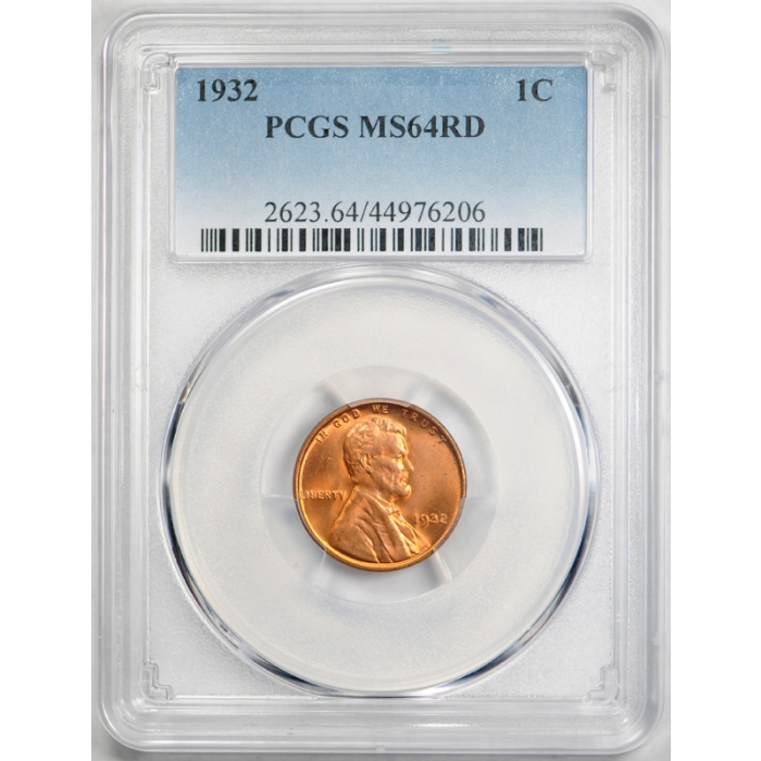 Description / 1932 1C Lincoln Wheat Cent PCGS MS 64 RD Uncirculated Full Red Blazing Coin !