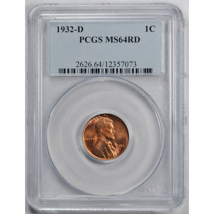 Description / 1932 D 1C Lincoln Wheat Cent PCGS MS 64 RD Red Uncirculated