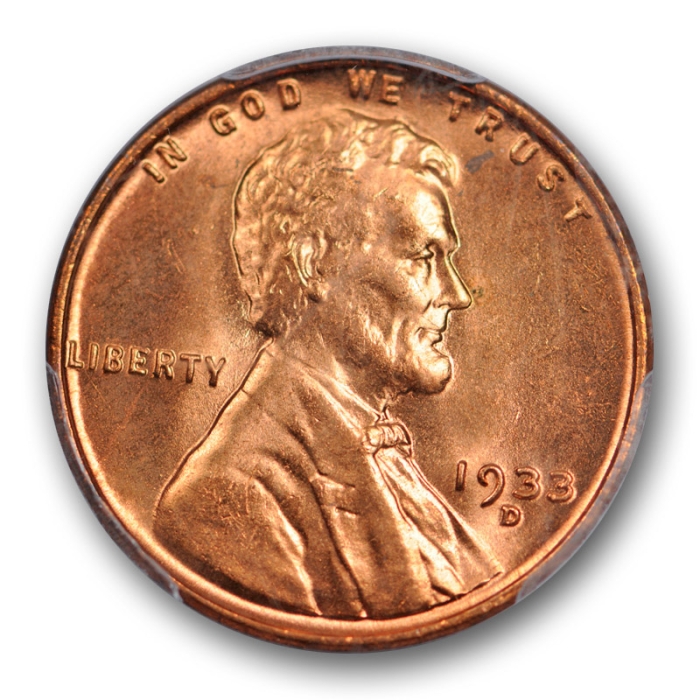 Description / 1933 D 1C Lincoln Wheat Cent PCGS MS 64 RD Full Red Uncirculated Lustrous