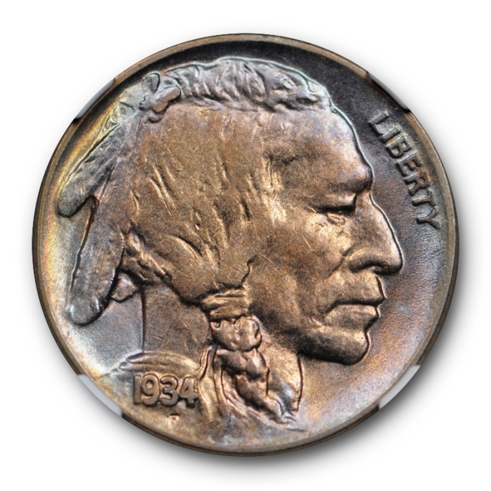 Description / 1934 Buffalo Nickel NGC AU 58 About Uncirculated Toned Beautiful Coin