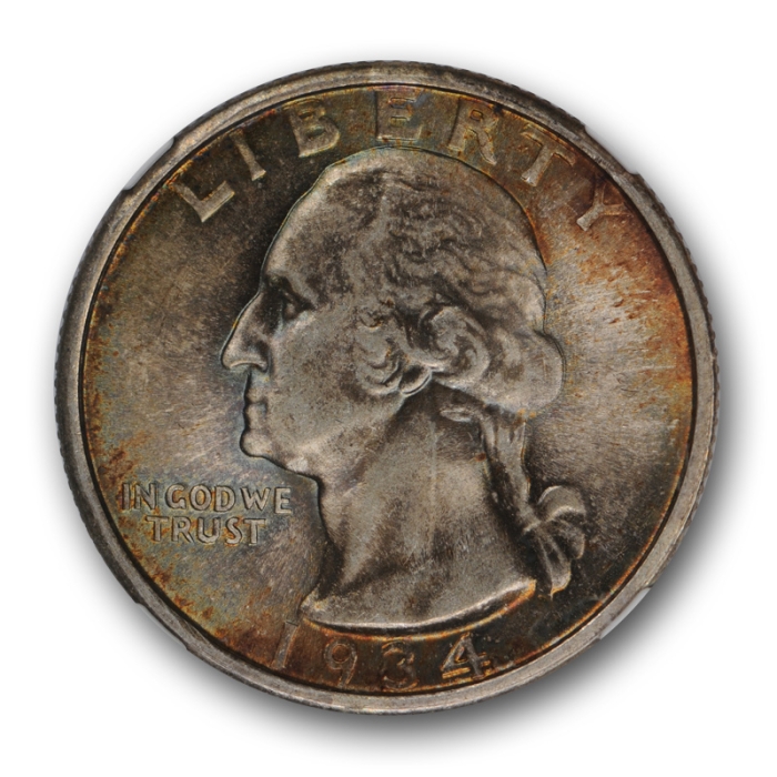 Description / 1934 Washington Quarter 25C NGC MS 64 Beautifully Toned Coin
