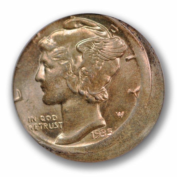 Description / 1935 10C Mercury Dime PCGS MS 64 Off Center Mint Error 10% Off