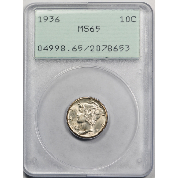 Description / 1936 10C Mercury Dime PCGS MS 65 Uncirculated Rattler First Generation Holder