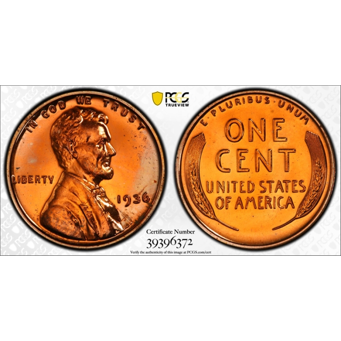 Description / 1936 1C Brilliant Proof Lincoln Wheat Cent PCGS PR 65 RD Fully Red Exceptional
