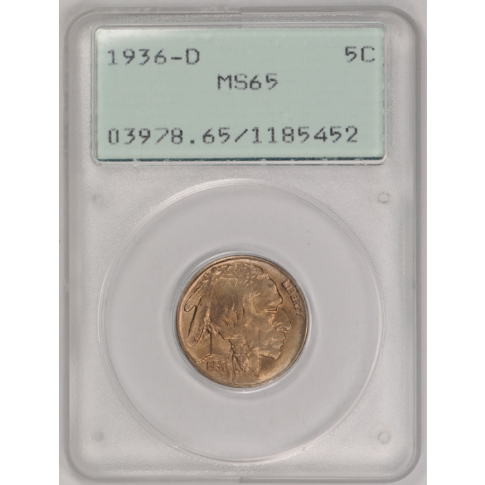 Description / 1936 D Buffalo Nickel PCGS MS 65 Undergraded Old Rattler Holder