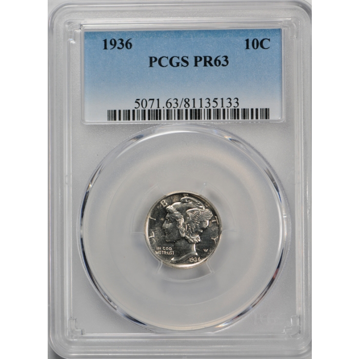 1936 Proof 10C Mercury Dime PCGS PR 63 Looks Nicer Beautiful Coin