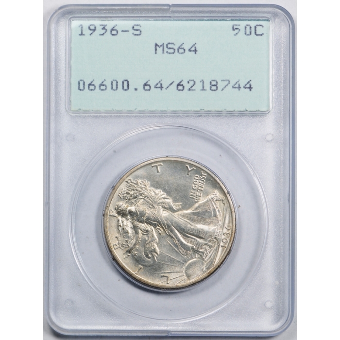 Description / 1936 S 50C Walking Liberty Half Dollar PCGS MS 64 Uncirculated Rattler Holder