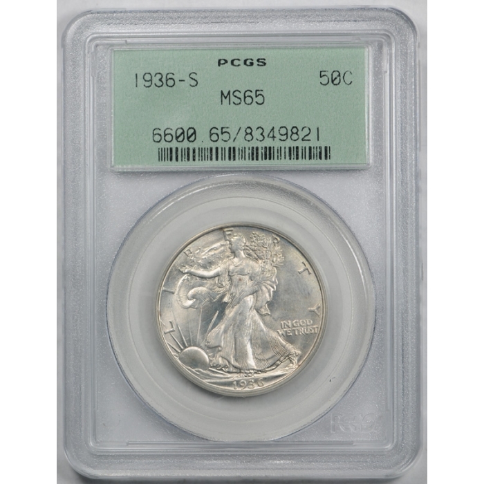 Description / 1936 S 50C Walking Liberty Half Dollar PCGS MS 65 Uncirculated OGH Old Holder