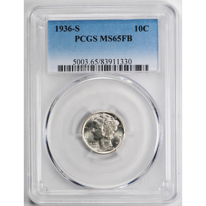 Description / 1936 S Mercury Dime PCGS MS 65 FB Full Bands Uncirculated Blast White