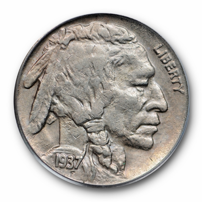 Description / 1937 D 5C 3 Legs Buffalo Nickel PCGS AU 50 About Uncirculated Three Legged