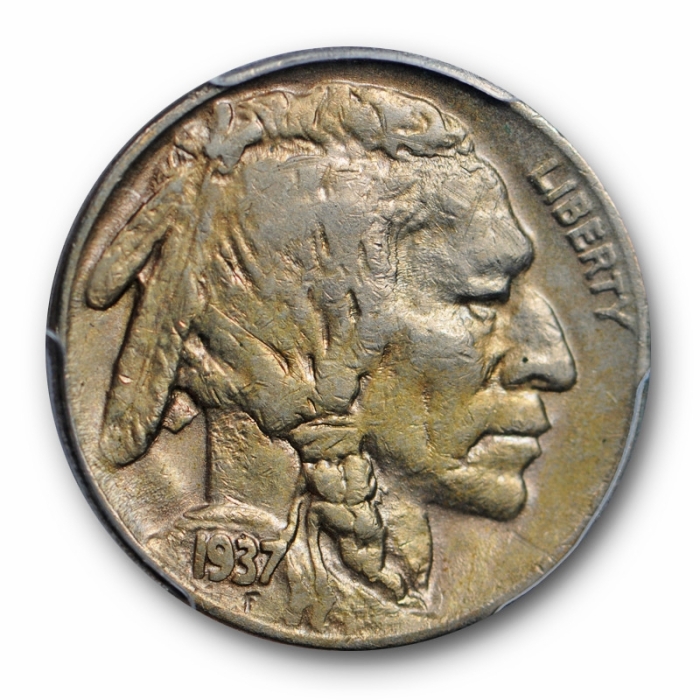 Description / 1937 D 5C 3 Legs Buffalo Nickel PCGS XF 45 Extra Fine Looks AU ! Three Legged