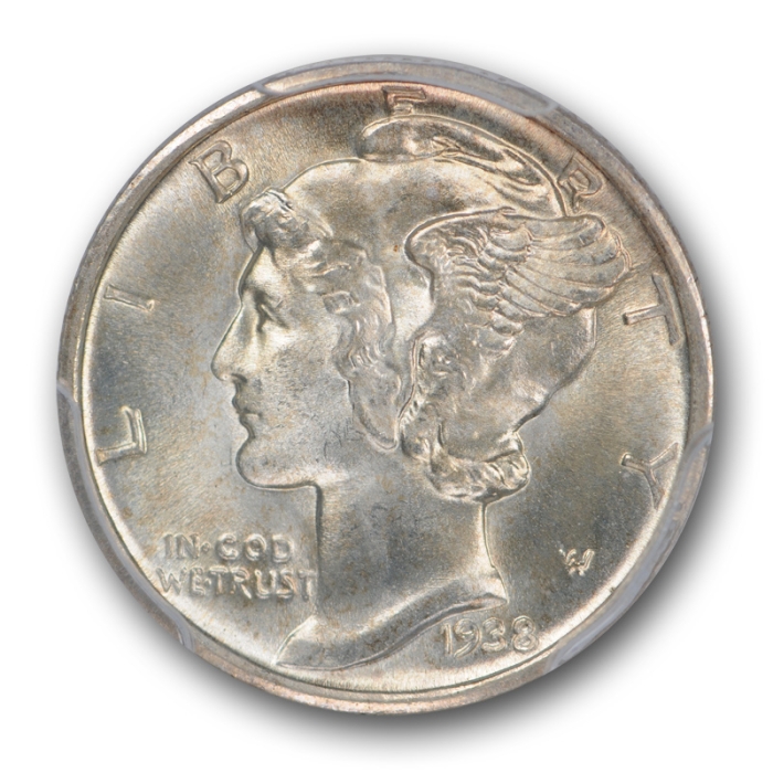 Description / 1938-D 10C Mercury Dime PCGS MS 67 FB Full Split Bands Lustrous Beauty
