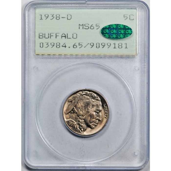 Description / 1938 D 5C Buffalo Nickel PCGS MS 65 Uncirculated Rattler Holder CAC Approved Cert9181