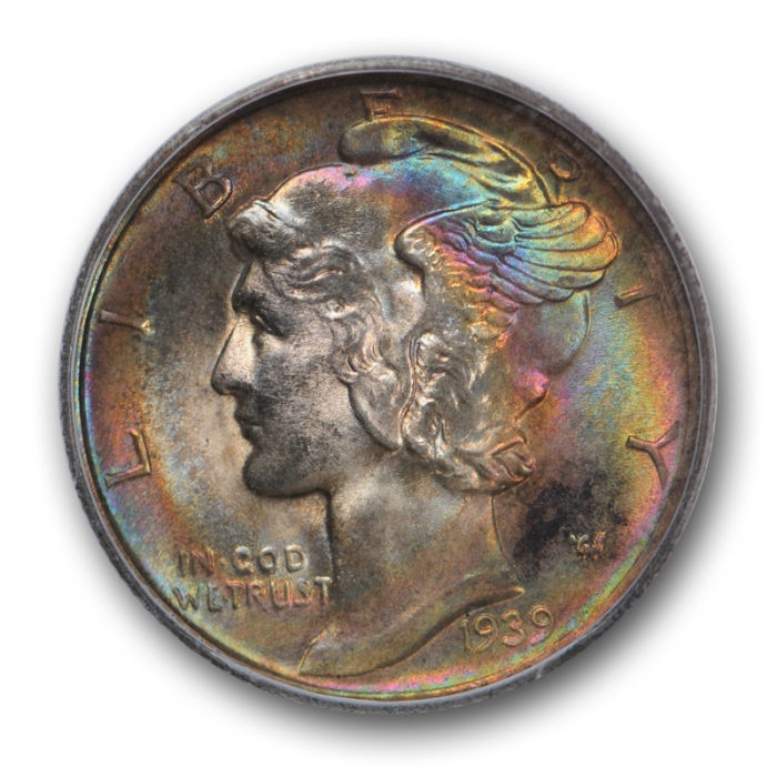 Description / 1939 D Monster Toned Mercury Dime ICG MS 66 FB Rainbow Colors Beautiful