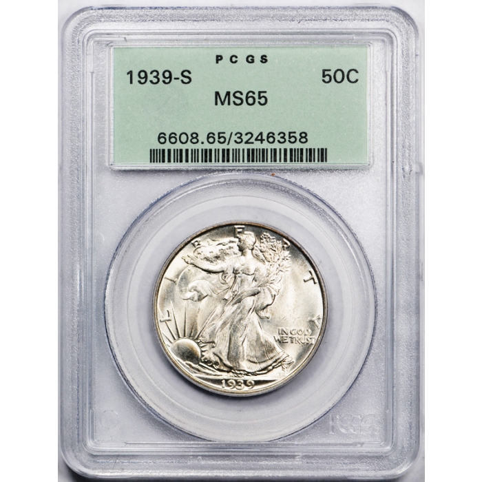 Description / 1939 S 50C Walking Liberty Half Dollar PCGS MS 65 Uncirculated OGH Stunning !