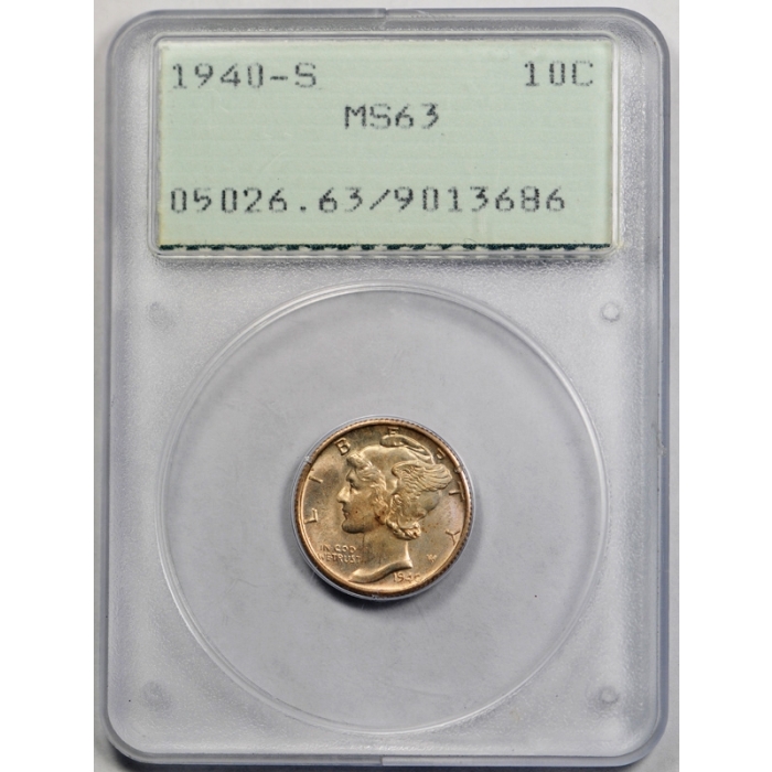 Description / 1940 S 10C Mercury Dime PCGS MS 63 Uncirculated Rattler First Generation Holder