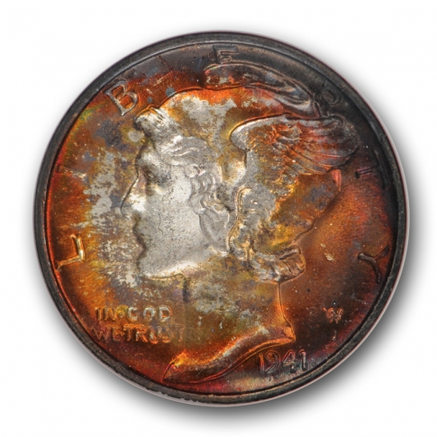 1941 Monster Toned Mercury Dime ANACS MS 66 FSB Deep Orange Tone Pretty