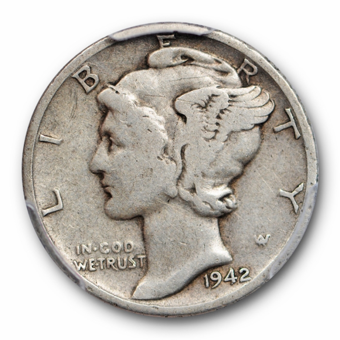 Description / 1942/41 D 10C Mercury Dime PCGS F 12 Fine Overdate Variety Coin 1942/1
