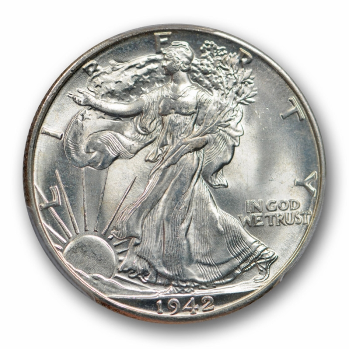 Description / 1942 D 50C Walking Liberty Half Dollar PCGS MS 65 Uncirculated Blast White
