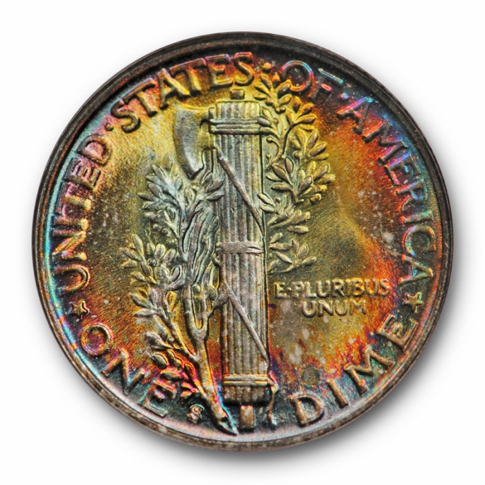 Description / 1945 S 10C Mercury Dime NGC MS 65 Uncirculated Toned Old Fatty Holder
