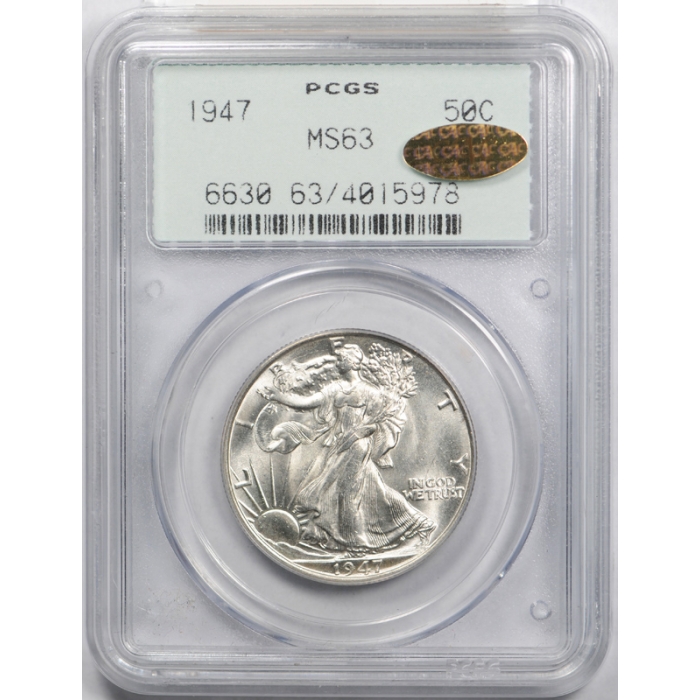 Description / 1947 50C Walking Liberty Half Dollar PCGS MS 63 Gold CAC Sticker OGH Pop 3 !