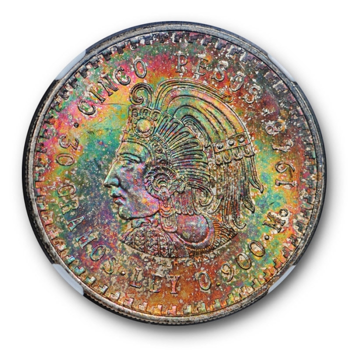 Description / 1948 MO MEXICO S5P NGC MS 64 Rainbow Toned Colorful Beautiful Coin 5 pesos