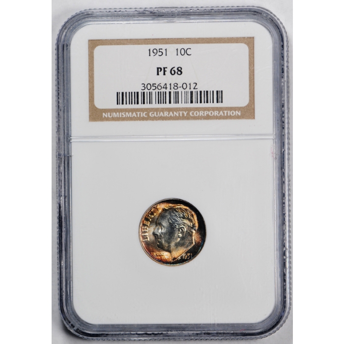 Description / 1951 Roosevelt Dime NGC PR 68 Proof Toned Beauty PF