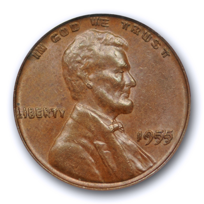 Description / 1955 Double Die Obverse Lincoln Cent ANACS MS 61 BN Uncirculated 1955/1955 DDO