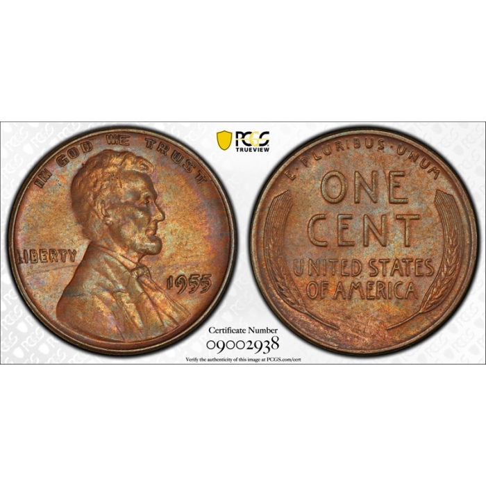 Description / 1955 Double Die Obverse Lincoln Cent PCGS AU 53 1955/1955 DDO Toned Nice !