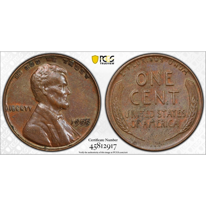 1955 1C Doubled Die Obverse Lincoln Wheat Cent PCGS AU 53 DDO 1955/1955