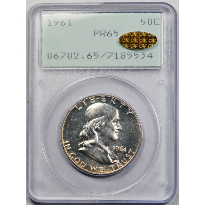 1961 50C Franklin Half Dollar PCGS PR 65 Proof Gold CAC Sticker Rattler Holder !