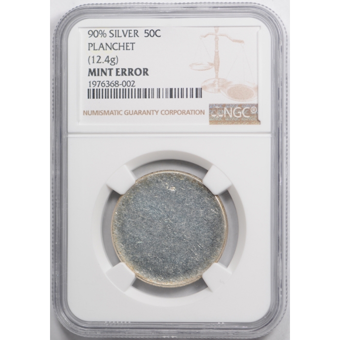 Description / 1964 50C ? Kennedy Half Dollar Blank Planchet NGC 90% Silver 12.4 G Mint Error