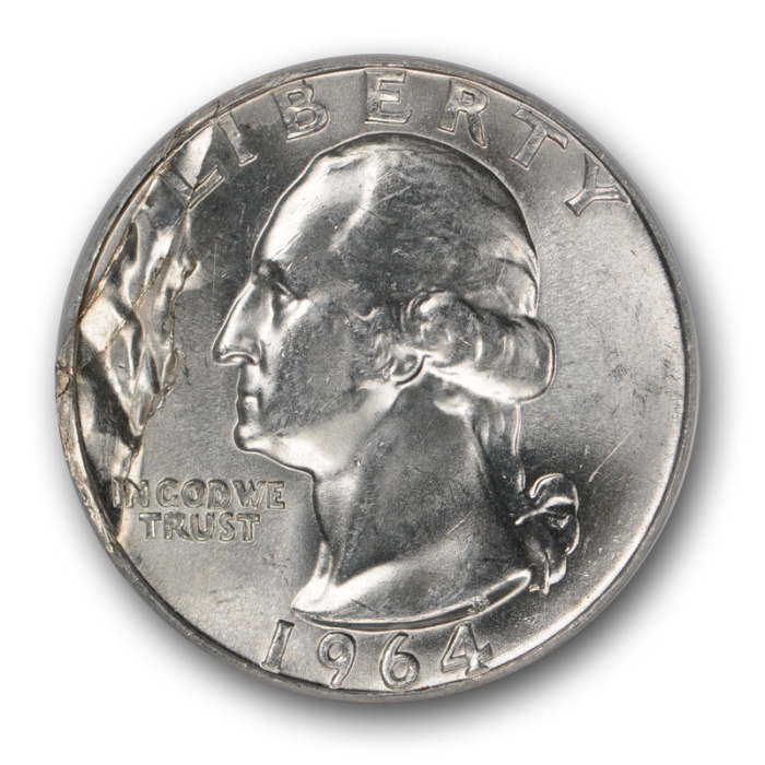 Description / 1964 D Washington Silver Quarter ANACS MS 64 Obverse Lamination Error Coin
