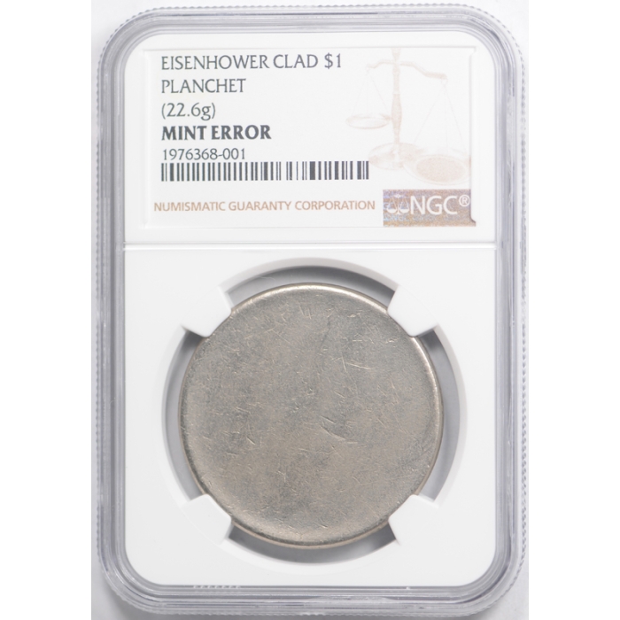 Description / 1976 $1 ? Eisenhower Clad Blank Planchet Dollar NGC 22.6G Mint Error Coin