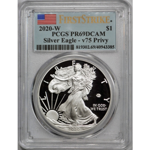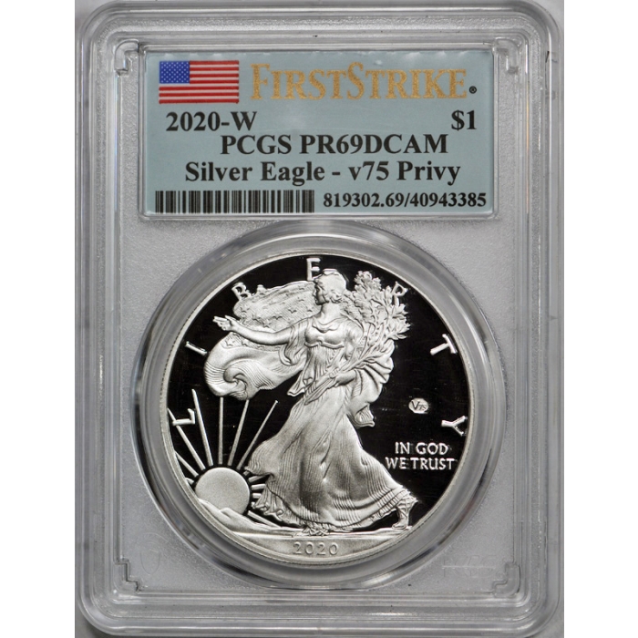 2020 W $1 Silver American Eagle PCGS PR 69 DCAM Privy Mark V75 WW11 First Strike